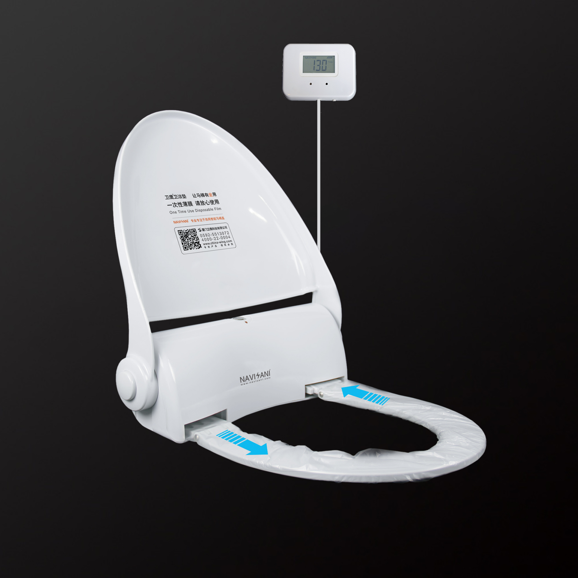 衛(wèi)鷹智能換套馬桶(商用智能馬桶),腳踢自動換膜。